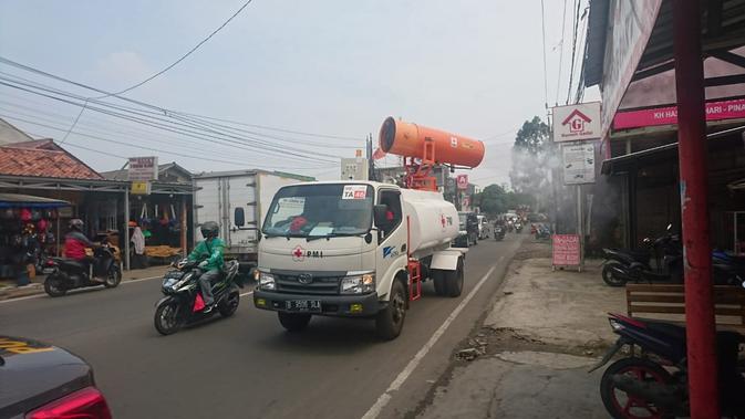 Liputan6.com, Jakarta - Jelang berakhirnya masa Pembatasan Sosial Berskala Besar (PSBB) ke empat kalinya, jalan-jalan protokoler di Tangerang, disemprot cairan disinfektan dengan mobil gunner, yang dibantu Palang Merah Indonesia (PMI) Pusat, Jumat (26/6/2020).