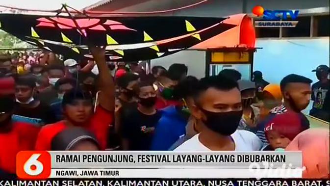 Awalnya festival layang-layang berjalan lancar, namun kemudian berubah manjadi tontonan ribuan warga, hingga berdesakan dan cenderung mengabaikan protokol kesehatan. Akibatnya, polisi dari Sektor Pangkur, Kabupaten Ngawi, Jawa Timur kemudian menghentikan kegiatan festival ini.